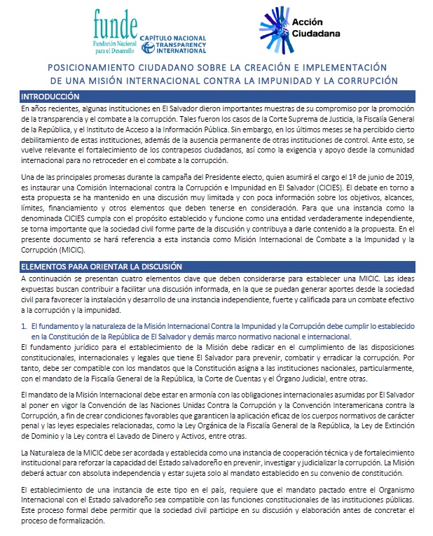 Acción Ciudadana y la Fundación Nacional para el Desarrollo, FUNDE, llevaron una cabo el martes 14 de mayo una conferencia de prensa en la cual brindaron su posicionamiento respecto a la creación e implementación de una Misión Internacional Contra la Corrupción y la Impunidad, (MICIC).