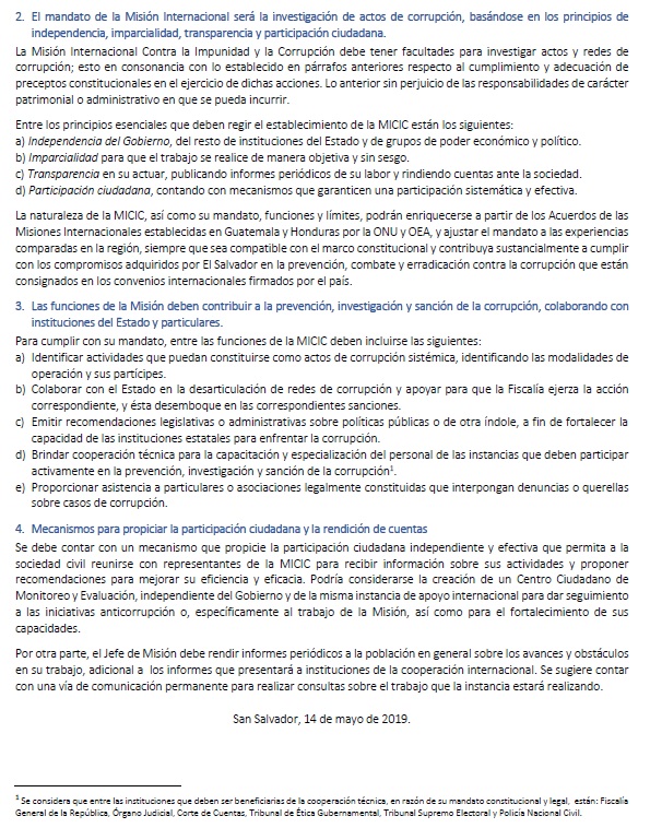 Con respecto a las funciones de una MICIC, Acción Ciudadana y FUNDE consideran que se deben de identificar actividades que puedan constituirse como actos de corrupción sistémica, identificando las modalidades de operación y sus partícipes; se debe de colaborar con el Estado en la desarticulación de redes de corrupción y apoyar para que la Fiscalía ejerza la acción correspondiente, y ésta desemboque en las correspondientes sanciones, se deben de emitir recomendaciones legislativas o administrativas sobre políticas públicas o de otra índole, a fin de fortalecer la capacidad de las instituciones estatales para enfrentar la corrupción.