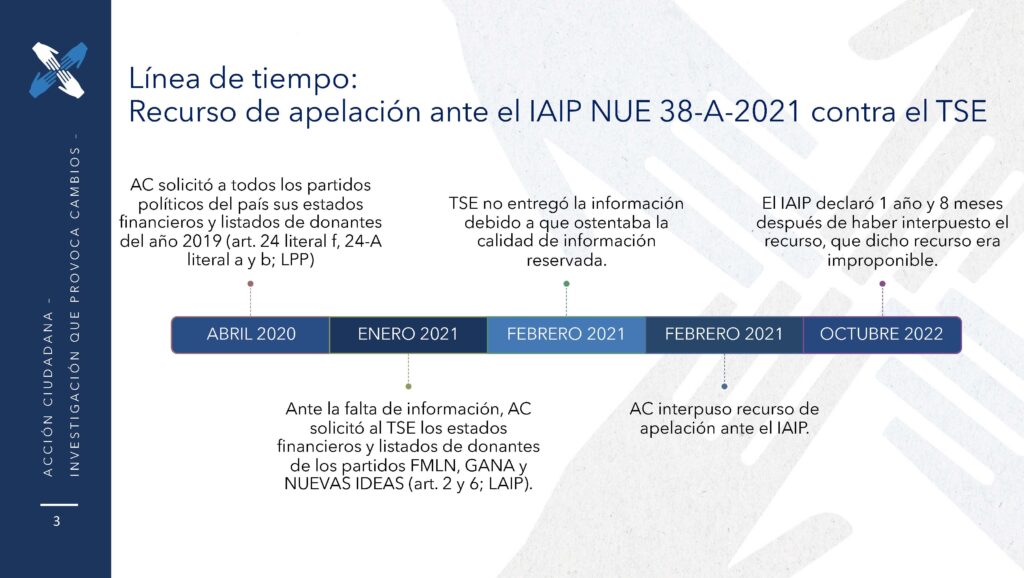 - En 2016, el IAIP reconoció que el criterio de máxima publicidad era aplicable a la información financiera de los partidos políticos que estuviera en poder de los entes obligados al cumplimiento de la LAIP, específicamente la relativa a los donantes que se reportan al Ministerio de Hacienda.