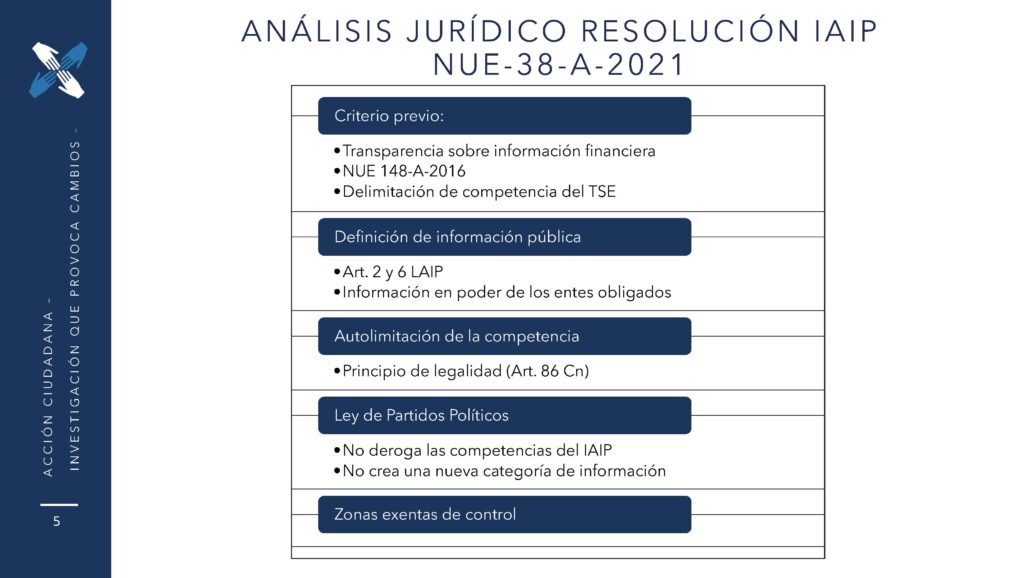 Ante la resolución pronunciada por el Instituto de Acceso a la Información Pública (IAIP) en la apelación NUE 38-A-2021 contra el TSE, en el que se declara incompetente de conocer casos que involucran información de partidos políticos, expresamos: