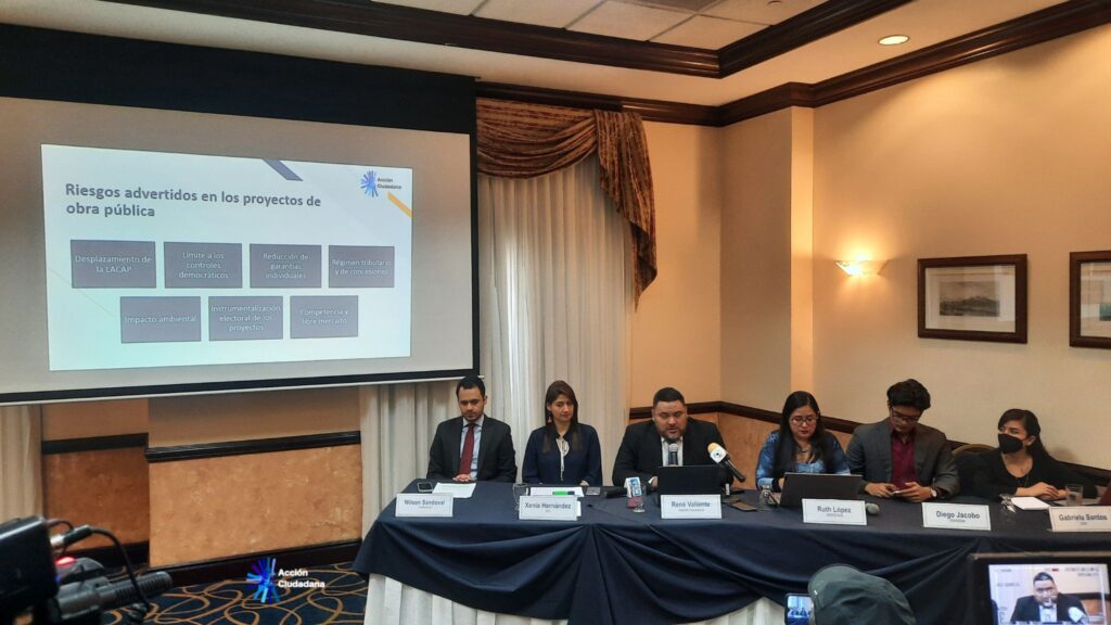 El coordinador del Observatorio para el Fortalecimiento Institucional de Acción Ciudadana, René Valiente, considera que es importante que las instituciones públicas sean transparentes en la ejecución de proyectos de obra pública para evitar que se den casos de corrupción en El Salvador. Mencionó que no hay acceso a la información de cómo se están desarrollando los tres grandes proyectos de obra pública tales como: Aeropuerto del Pacífico, Tren del Pacífico y Centros penales (más información haciendo click aquí)